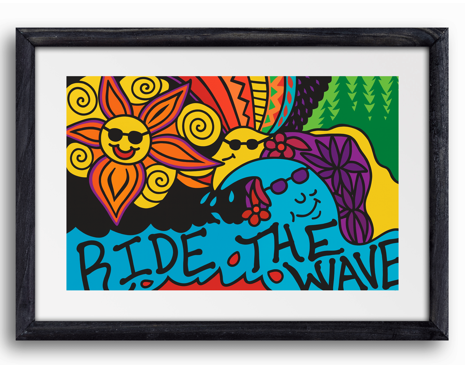 Ride the Wave began as a lighthearted doodle that quickly revealed a deeper truth. Though whimsical and bold in style, the message is serious: manifestation works best when we align with the current already moving around us. By flowing with what the universe and higher self are showing, creation comes smoother and freer than when ego tries to force direction. A reminder that joy and surrender ride hand in hand.