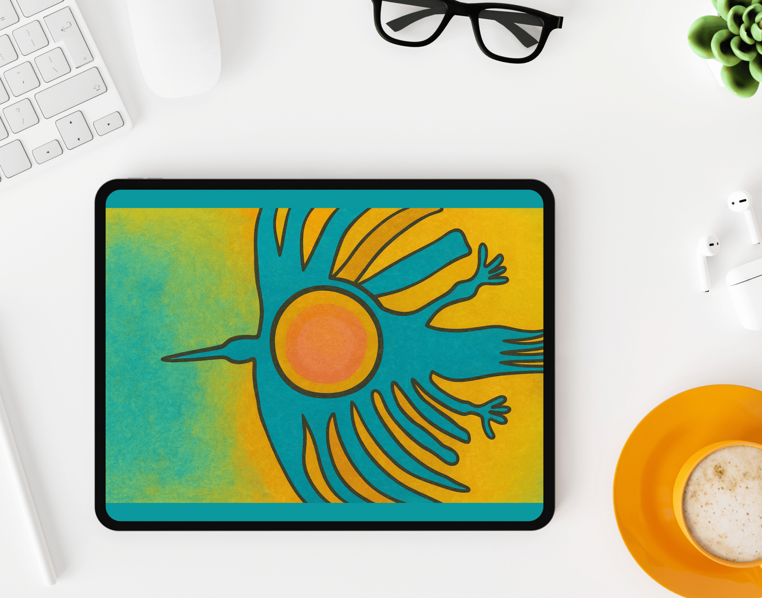 This digital edition provides instant access to Solar Flight. A turquoise bird of light expands its wings across a golden horizon, carrying the sun at its center. Ideal for meditation, altar work, or personal printing, this piece embodies ascension and spirit’s luminous journey.