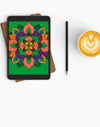 This digital edition provides instant access to Emerald Bloom. A sacred mandala in bold emerald, coral, and violet radiates harmony and renewal. Ideal for meditation, altar work, or as a personal digital keepsake.