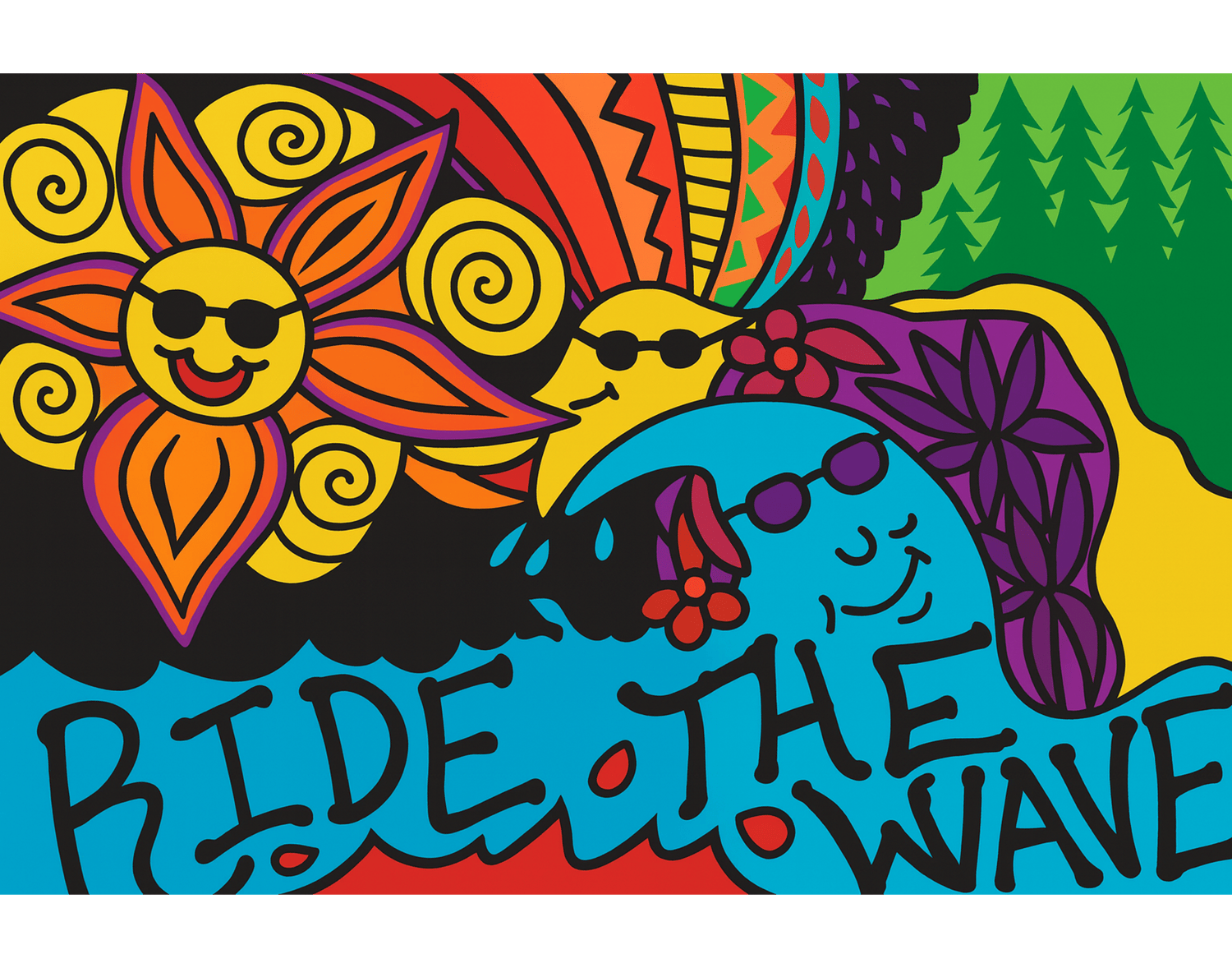 A playful, psychedelic sun and wave radiate joy and color, inviting you to flow with life’s current. This fine art print captures the whimsy and wisdom of moving with the universe, not against it, bringing brightness and levity.