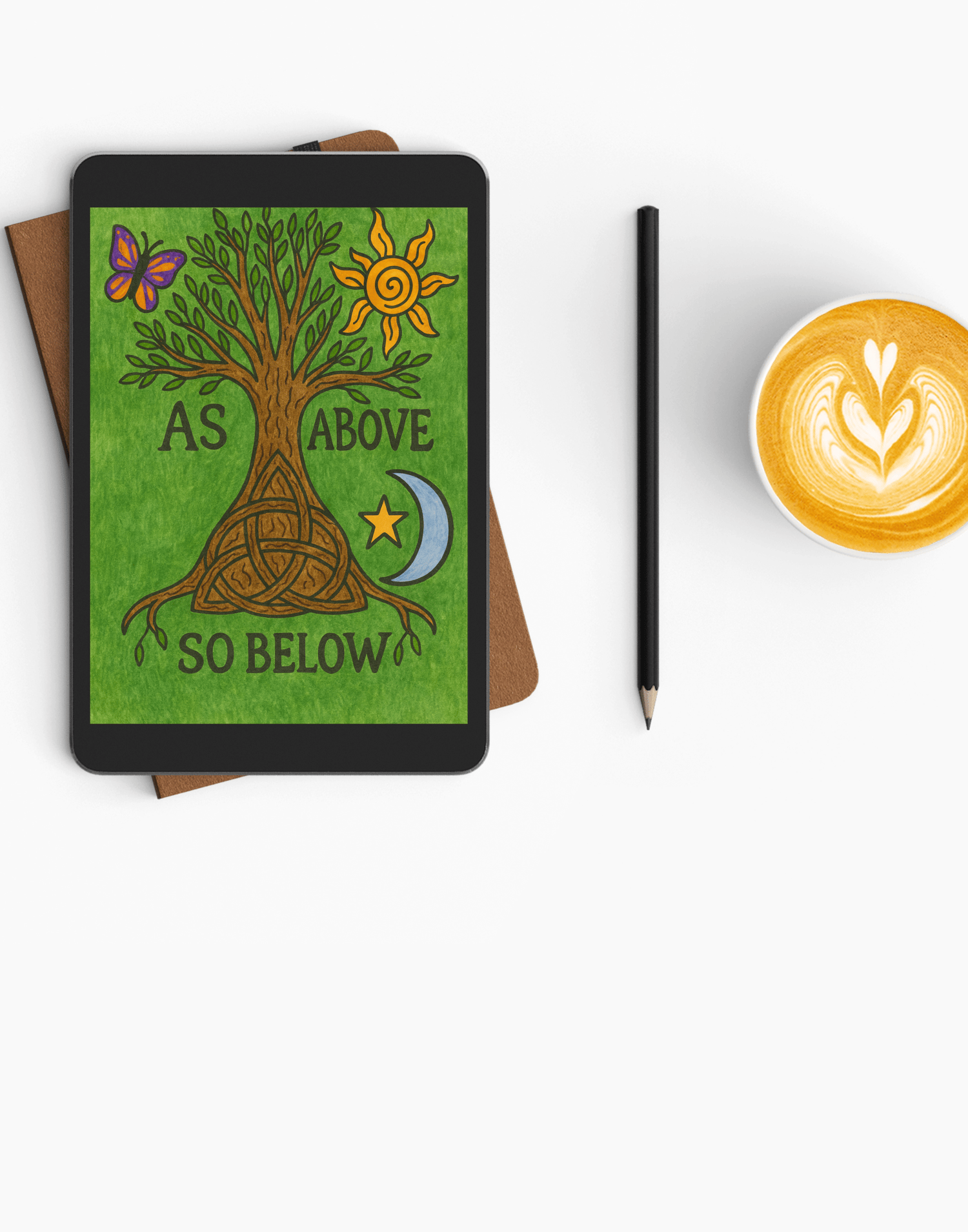 This digital edition provides instant access to As Above, So Below. A sacred tree with sun, moon, butterfly, and Celtic knot roots conveys the unity of earth and spirit. Perfect for printing, meditation, or as a personal digital keepsake.