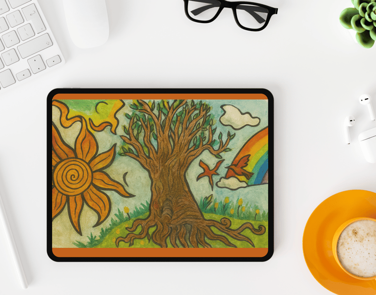 This digital edition provides immediate access to a professional-quality regeneration of Solstice Song on Shaw. A perched bird, tribal border, and glowing fuchsia sunset recall the island’s evening chorus-a keepsake of reverence, rhythm, and place.